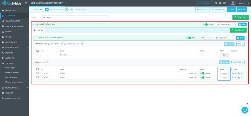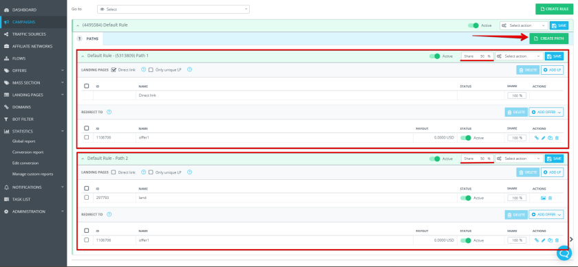 - distribute traffic between offers or landing pages.