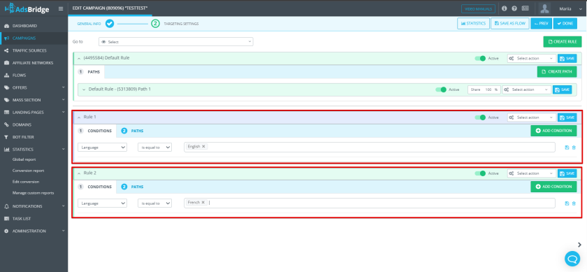 If you need to route traffic based on specific parameters, you can use rules with conditions.
