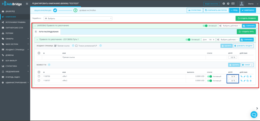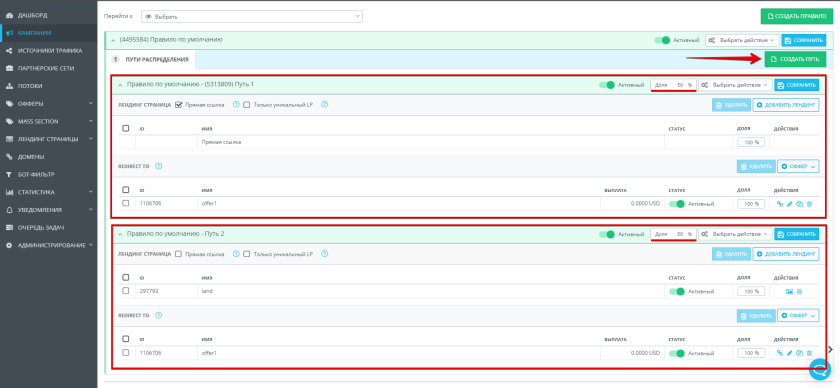 Путь распределения – это набор элементов, на которые отправляется трафик: