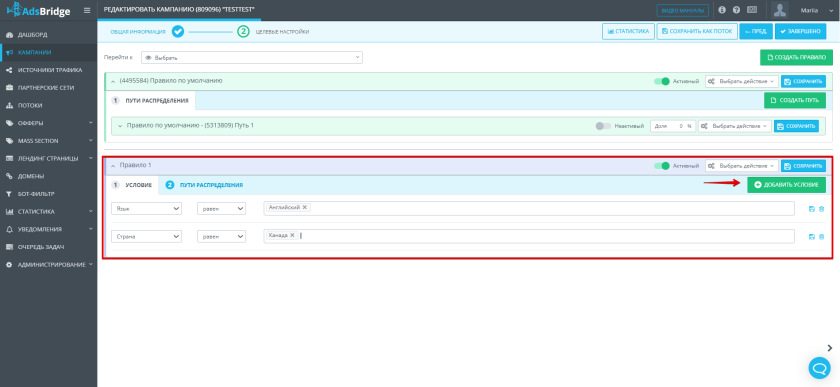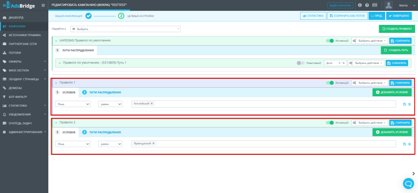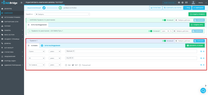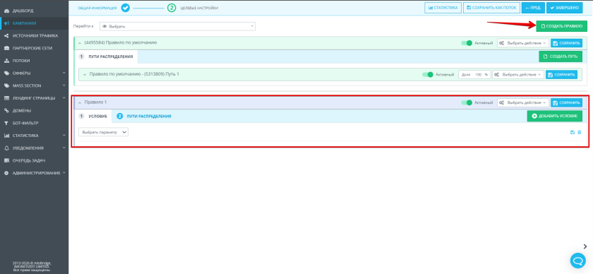 Если вам нужно отправлять трафик по определенным параметрам, используются правила с условиями.